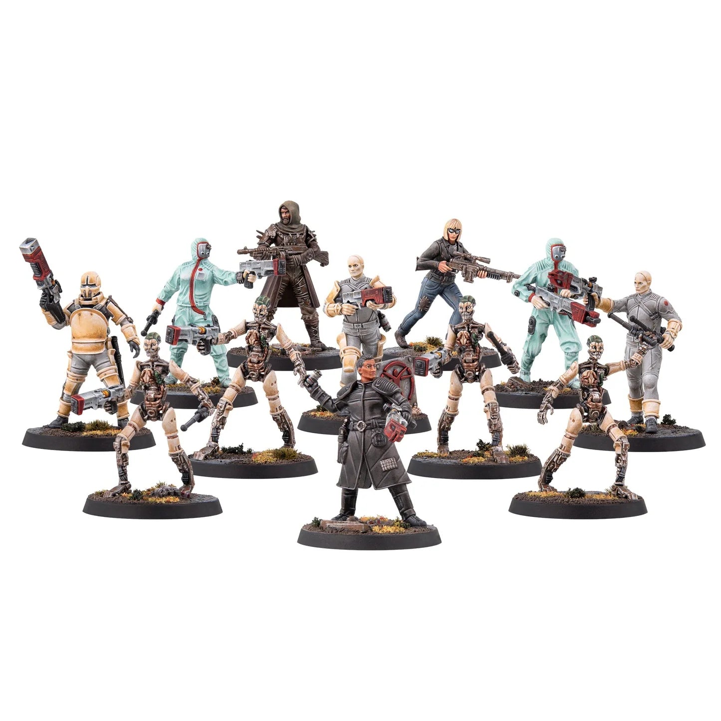 This Fallout: Factions set contains 12 32mm-scale, high-quality, multi-part hard-plastic miniatures with optional parts and plastic bases.